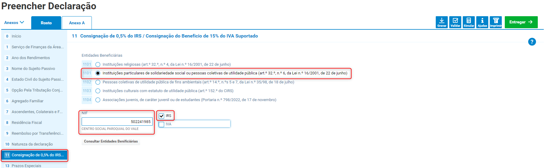 Para isso só precisa de colocar o nosso NIF na consignação: